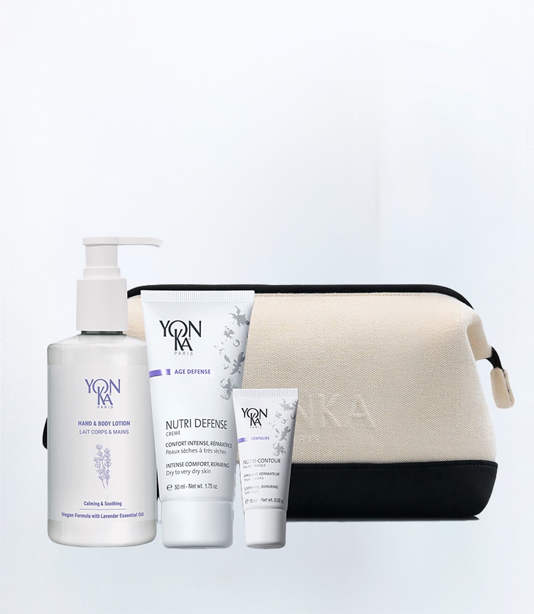 De Yon-Ka Nutri Giftset is perfect voor de droge of verzwakte huid die intensieve voeding nodig heeft. De Nutri Defense Crème herstelt de huidbarrière, terwijl Nutri-Contour de lippen en ogen voedt en verzacht. De Hand & Body Lotion maakt deze verzorgende set compleet.